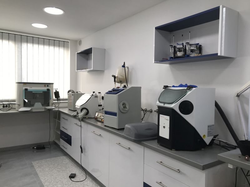 CAD-CAM, sistem kompjutorskog dizajniranja zubi. Laboratorij posjeduje 3D printer i 3D scaner.